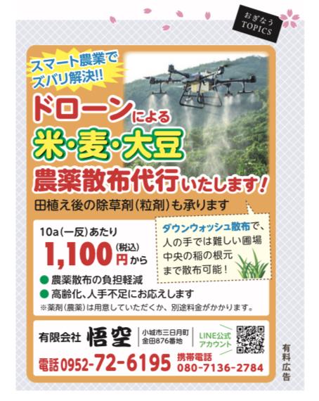 また小城市広報【さくら】4月号から ドローン農薬散布掲載いたします‼︎
