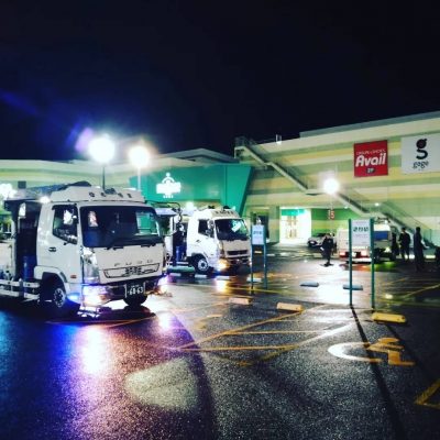 ユニック車2台も夜間作業へ出動です☺